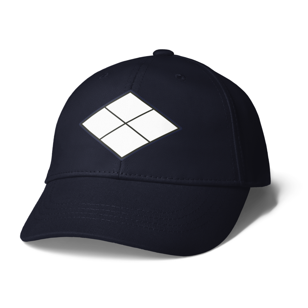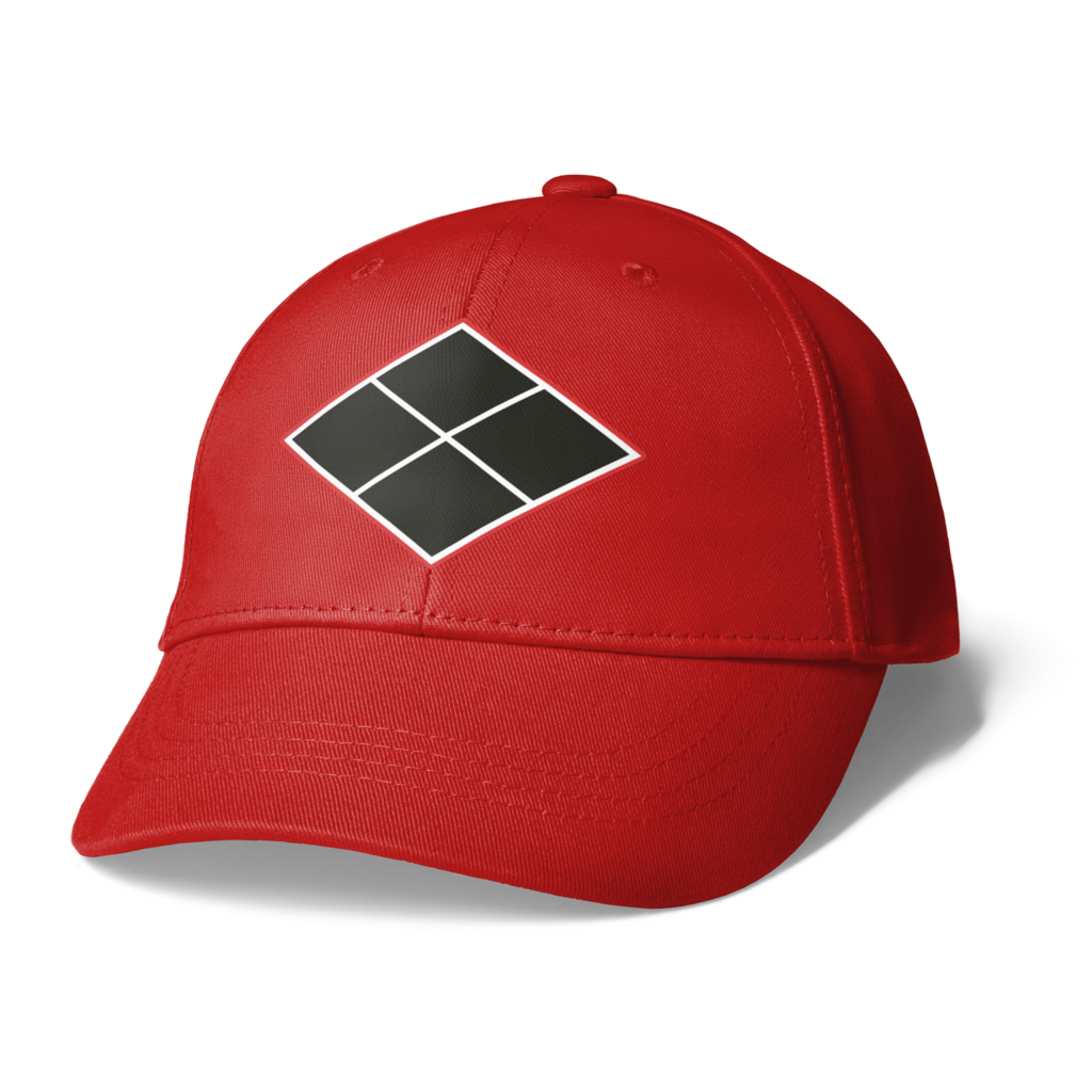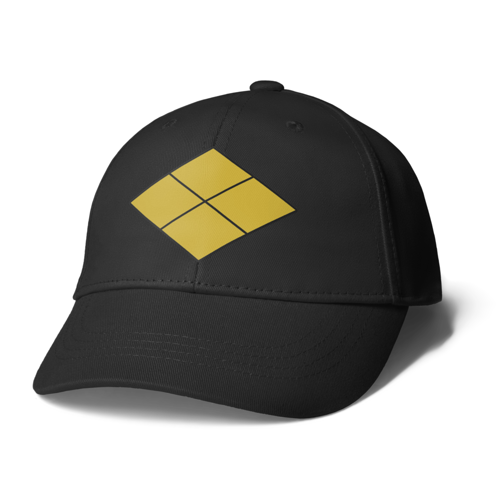 戦国マーケット キャップ 帽子 歴史 和風 デザイン マーク 戦国武将 アイコン 武将 紋章 エンブレム 侍 日本 サムライ 家紋 紋 記号 シンボル サイン 日本風 紋所 シンボルマーク 家紋風 紋どころ ジャポニズム 黒 黒色 赤 赤系 赤色 紺 紺色 青 青色 橙 白 金 金色 黄土 黄土色 水色 レッド ブルー ゴールド ブラック ホワイト ネイビー スカイブルー オレンジ 武田信玄 武田勝頼 武田家 信玄公 勝頼公 武田菱 割菱 四割菱 菱紋