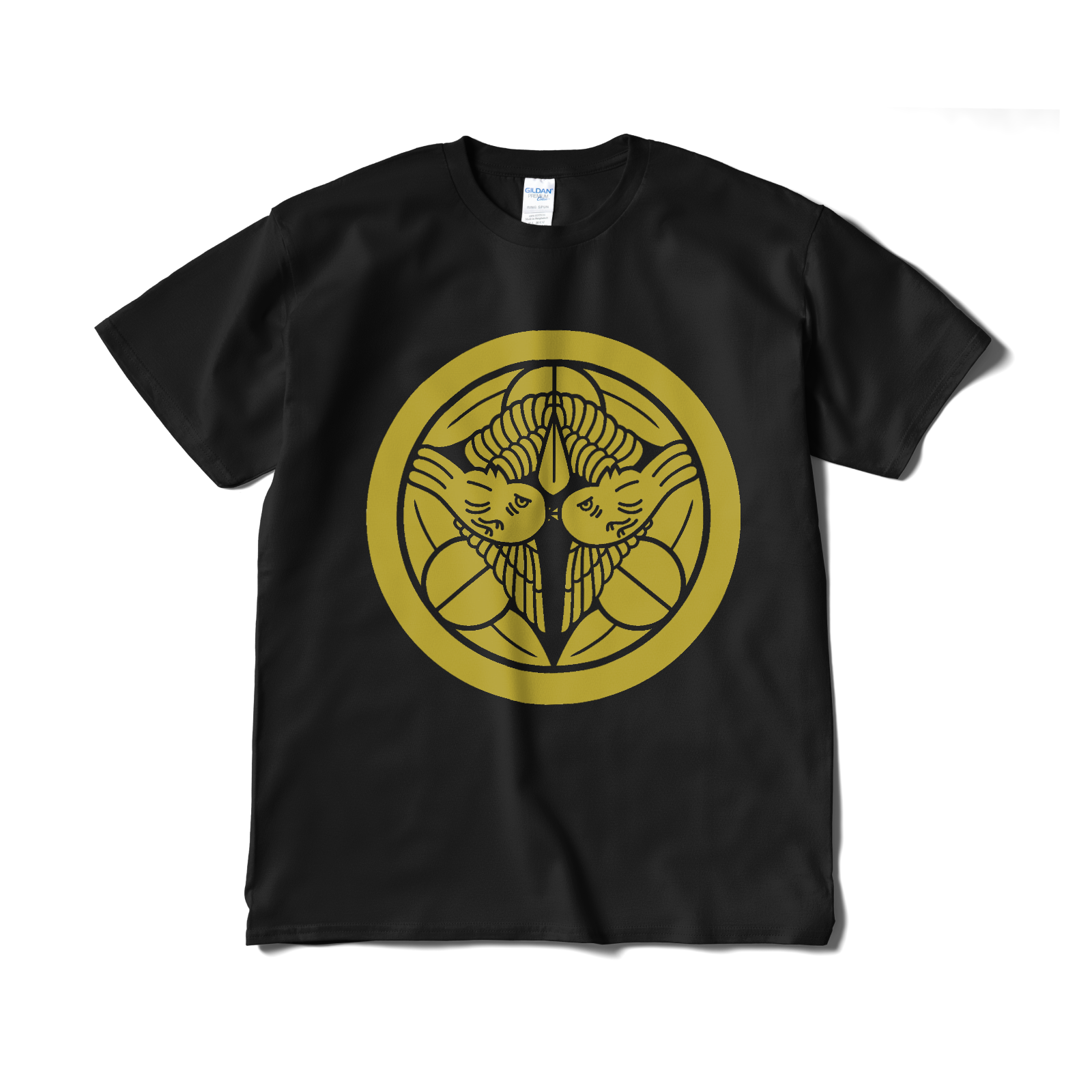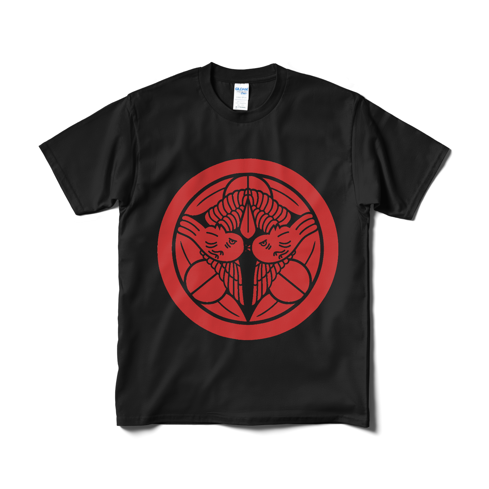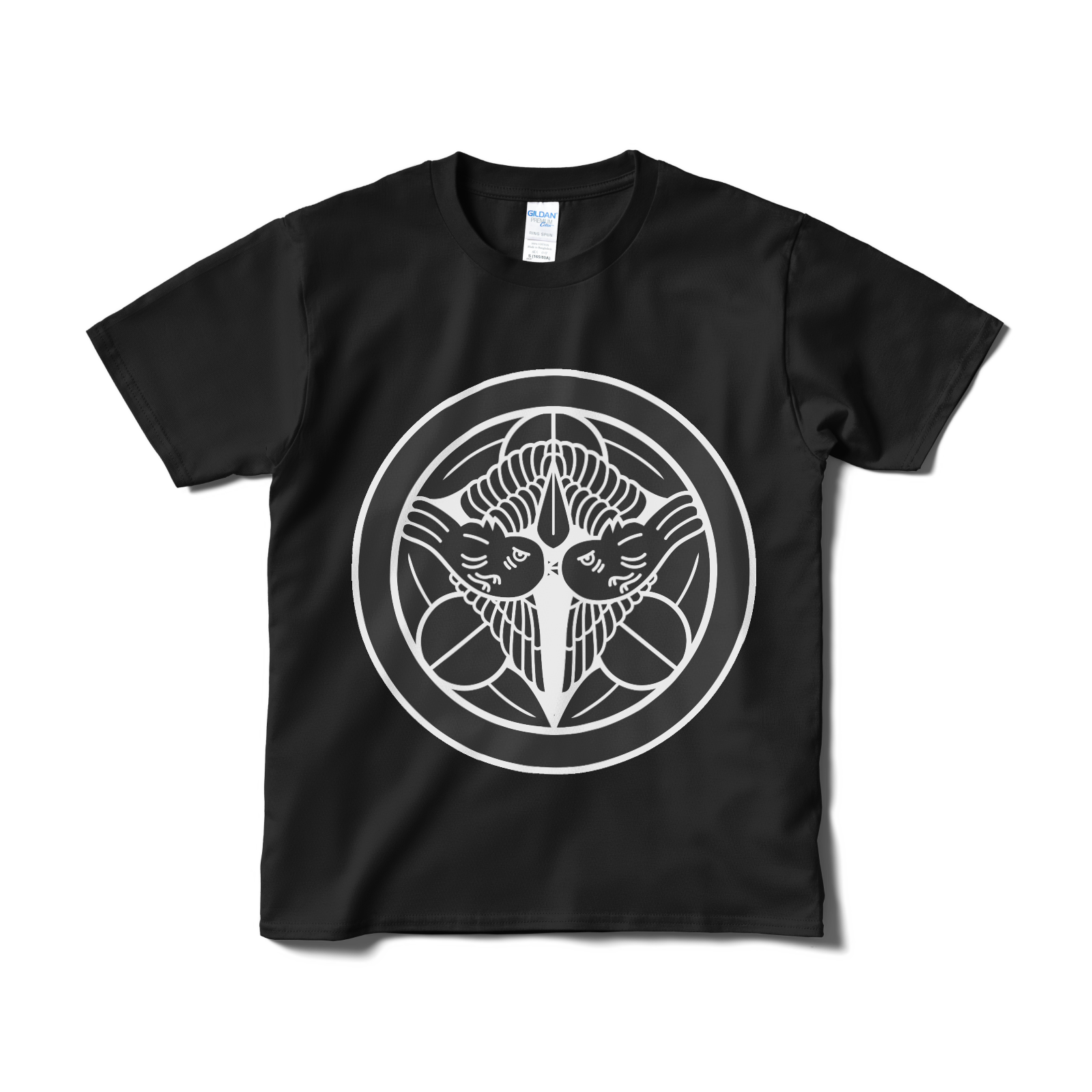 戦国武将 上杉謙信の家紋「飛び雀」をあしらったTシャツ。