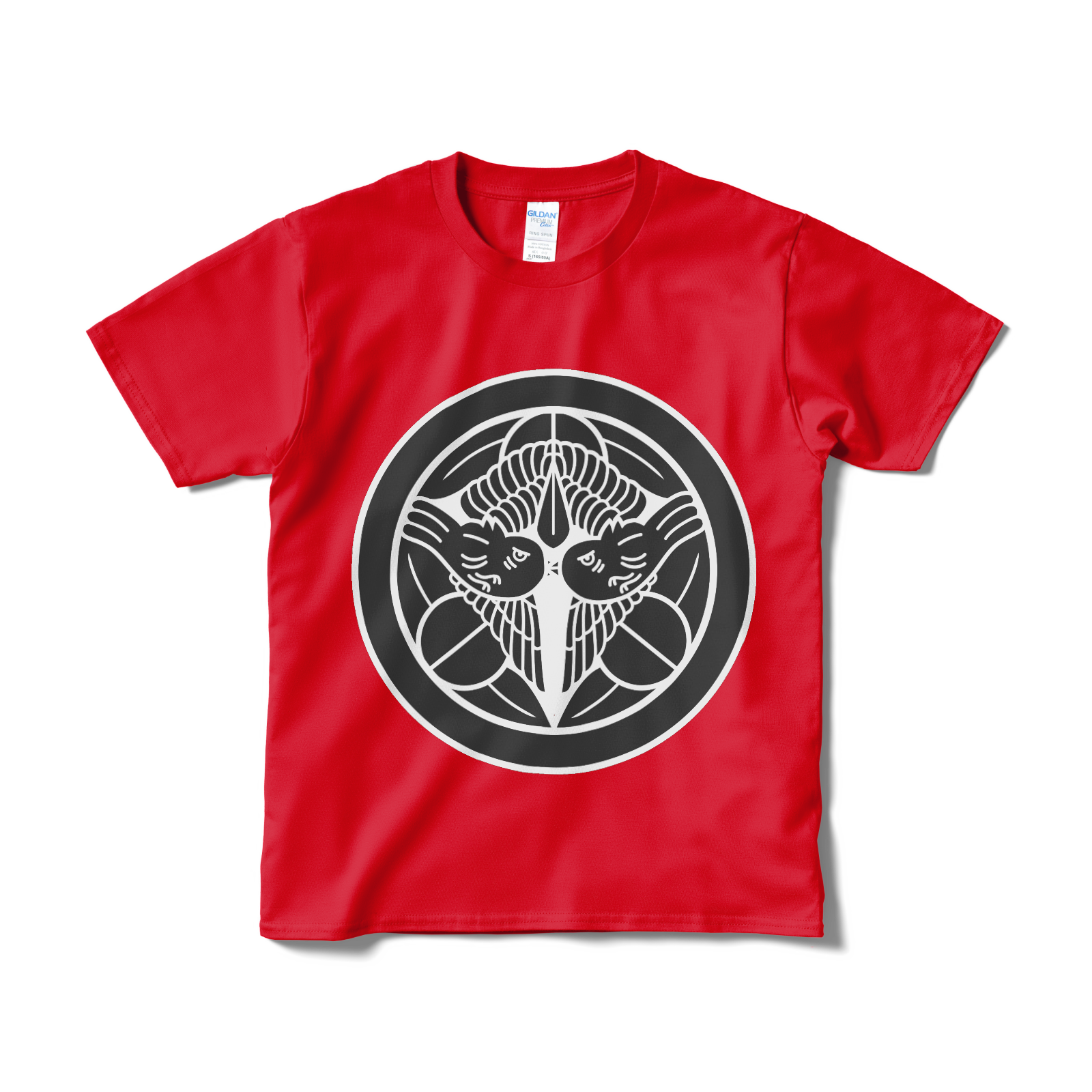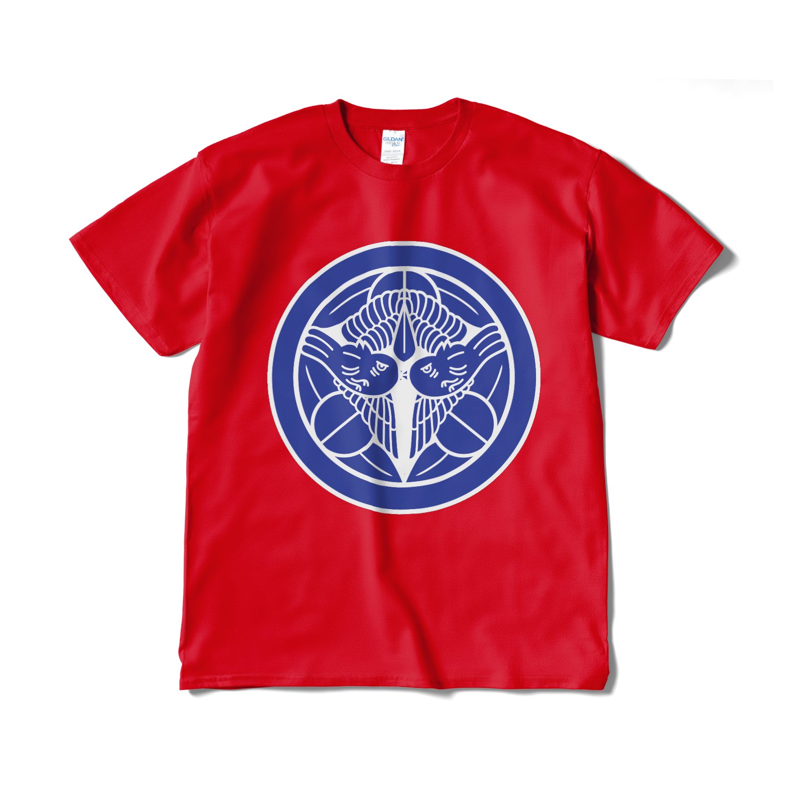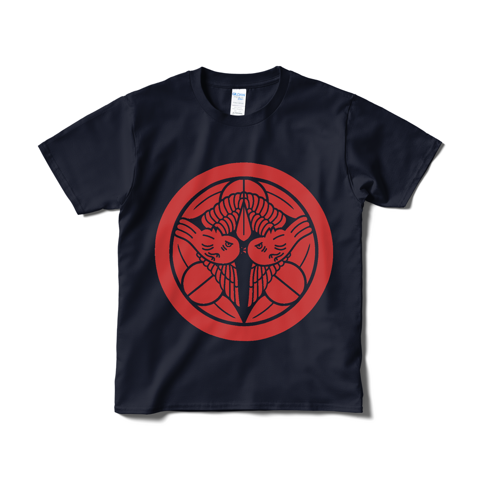 戦国武将 上杉謙信の家紋「飛び雀」をあしらったTシャツ。