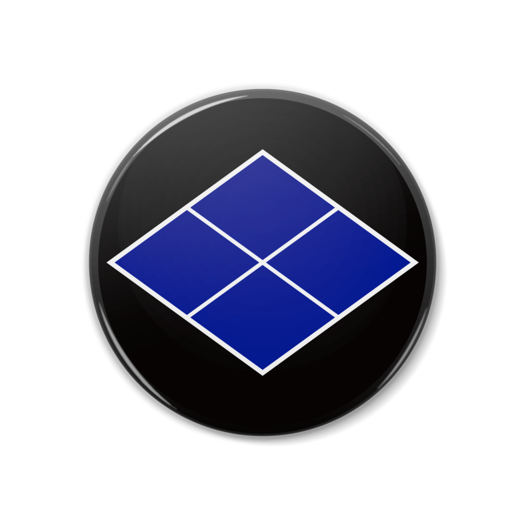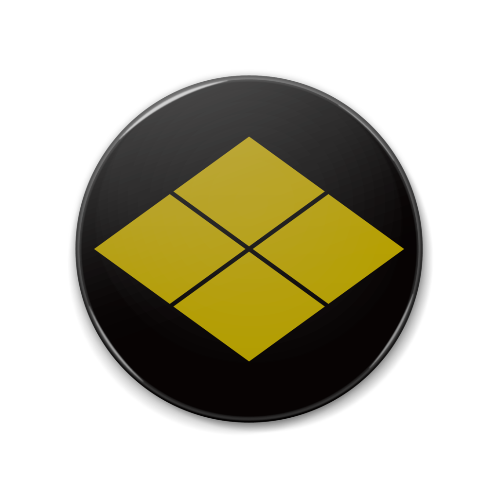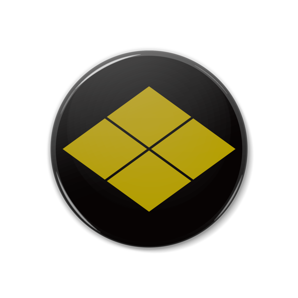 戦国マーケット 缶バッジ 特大缶バッジ 歴史 和風 デザイン マーク 戦国武将 アイコン 武将 紋章 エンブレム 侍 日本 サムライ 家紋 紋 記号 シンボル サイン 日本風 紋所 シンボルマーク 家紋風 紋どころ ジャポニズム 黒 黒色 赤 赤系 赤色 青 青色 白 金 金色 黄土 黄土色 レッド ブルー ゴールド ブラック ホワイト 武田信玄 武田勝頼 武田家 信玄公 武田菱 四割菱 割菱 四つ菱 菱紋