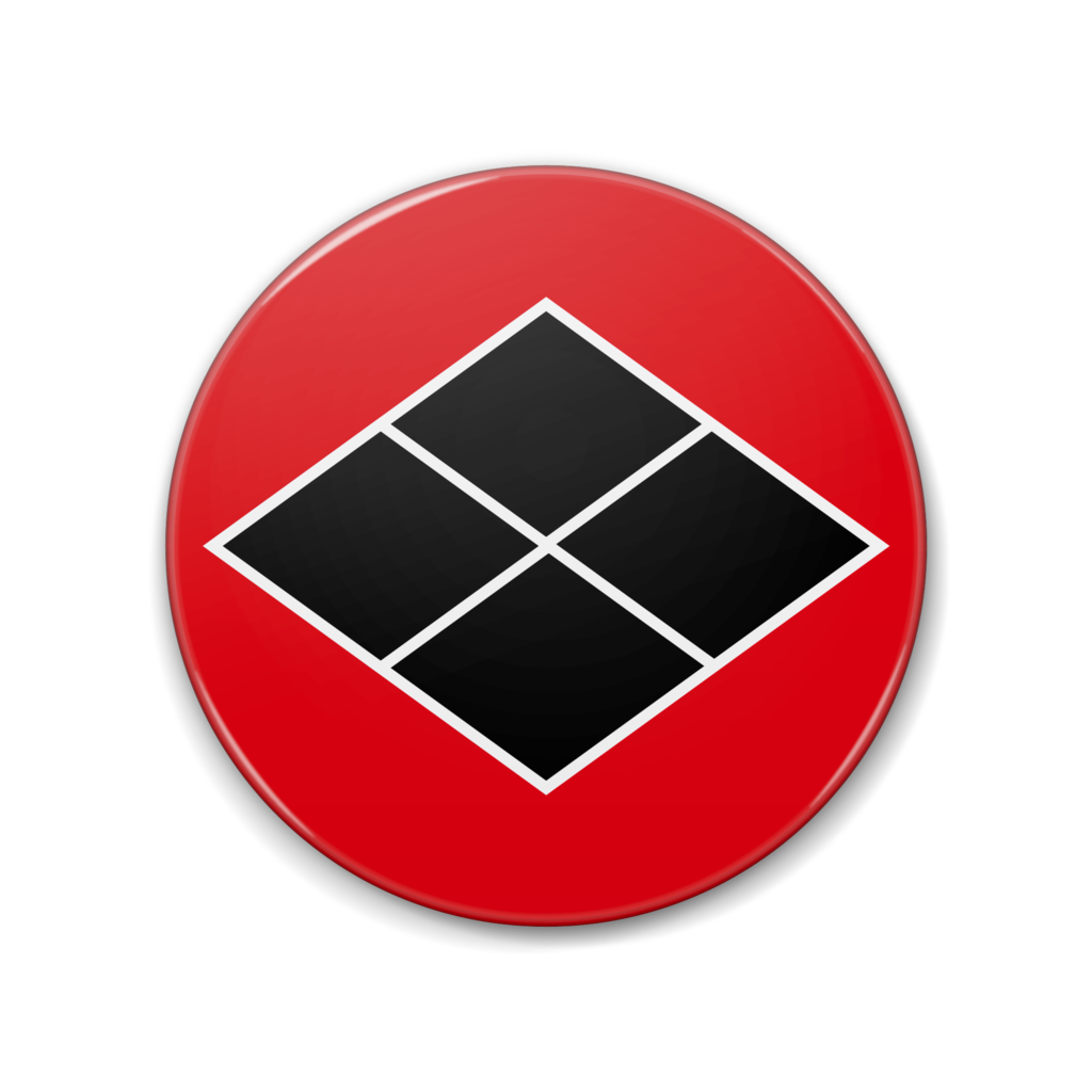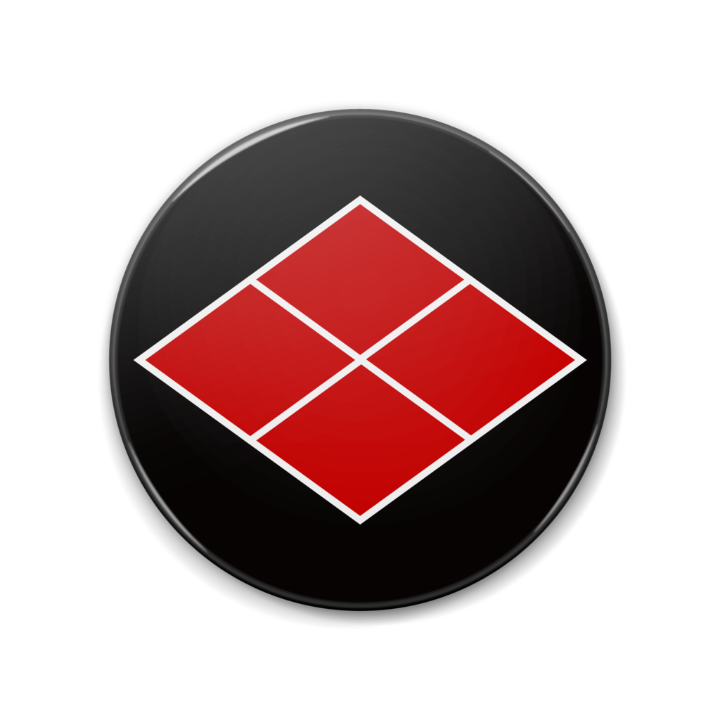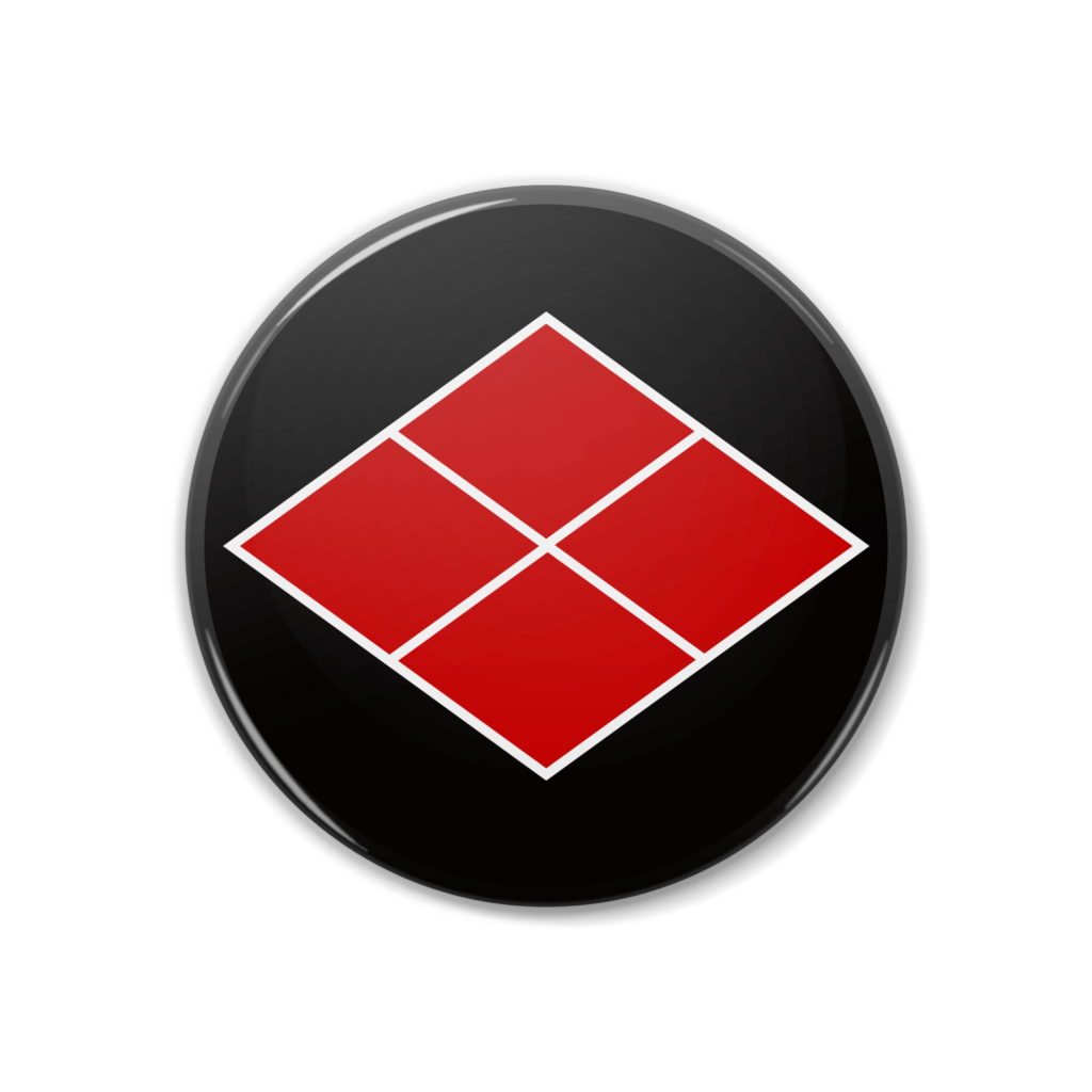 戦国マーケット 缶バッジ 特大缶バッジ 歴史 和風 デザイン マーク 戦国武将 アイコン 武将 紋章 エンブレム 侍 日本 サムライ 家紋 紋 記号 シンボル サイン 日本風 紋所 シンボルマーク 家紋風 紋どころ ジャポニズム 黒 黒色 赤 赤系 赤色 青 青色 白 金 金色 黄土 黄土色 レッド ブルー ゴールド ブラック ホワイト 武田信玄 武田勝頼 武田家 信玄公 武田菱 四割菱 割菱 四つ菱 菱紋