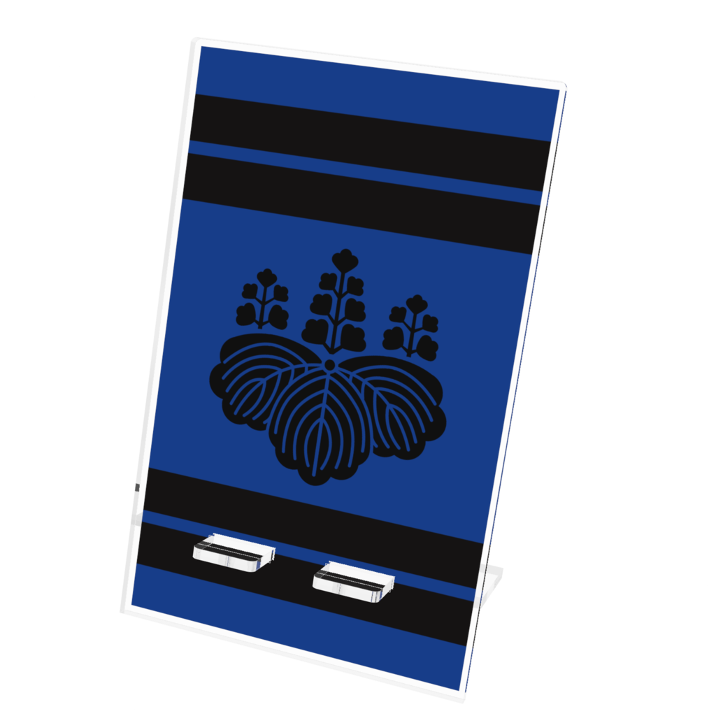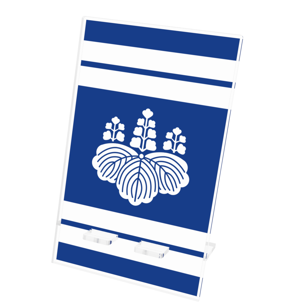 スマホスタンド豊臣秀吉 豊臣秀頼 家紋 五七の桐 青地に白縞 指物風
